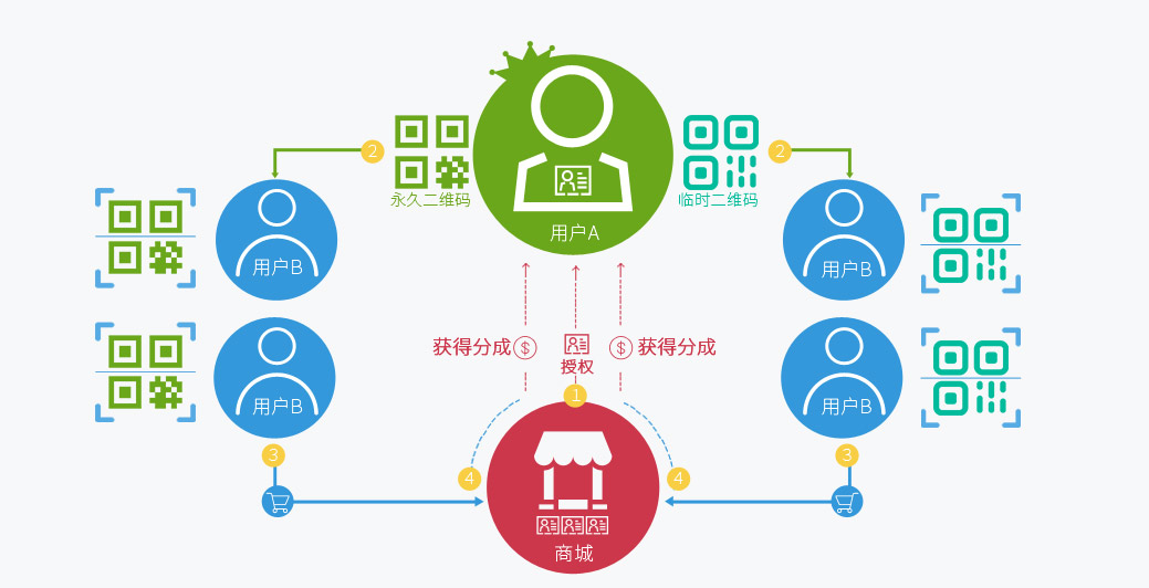 扫码推荐分成、人人分销 (三级分成)